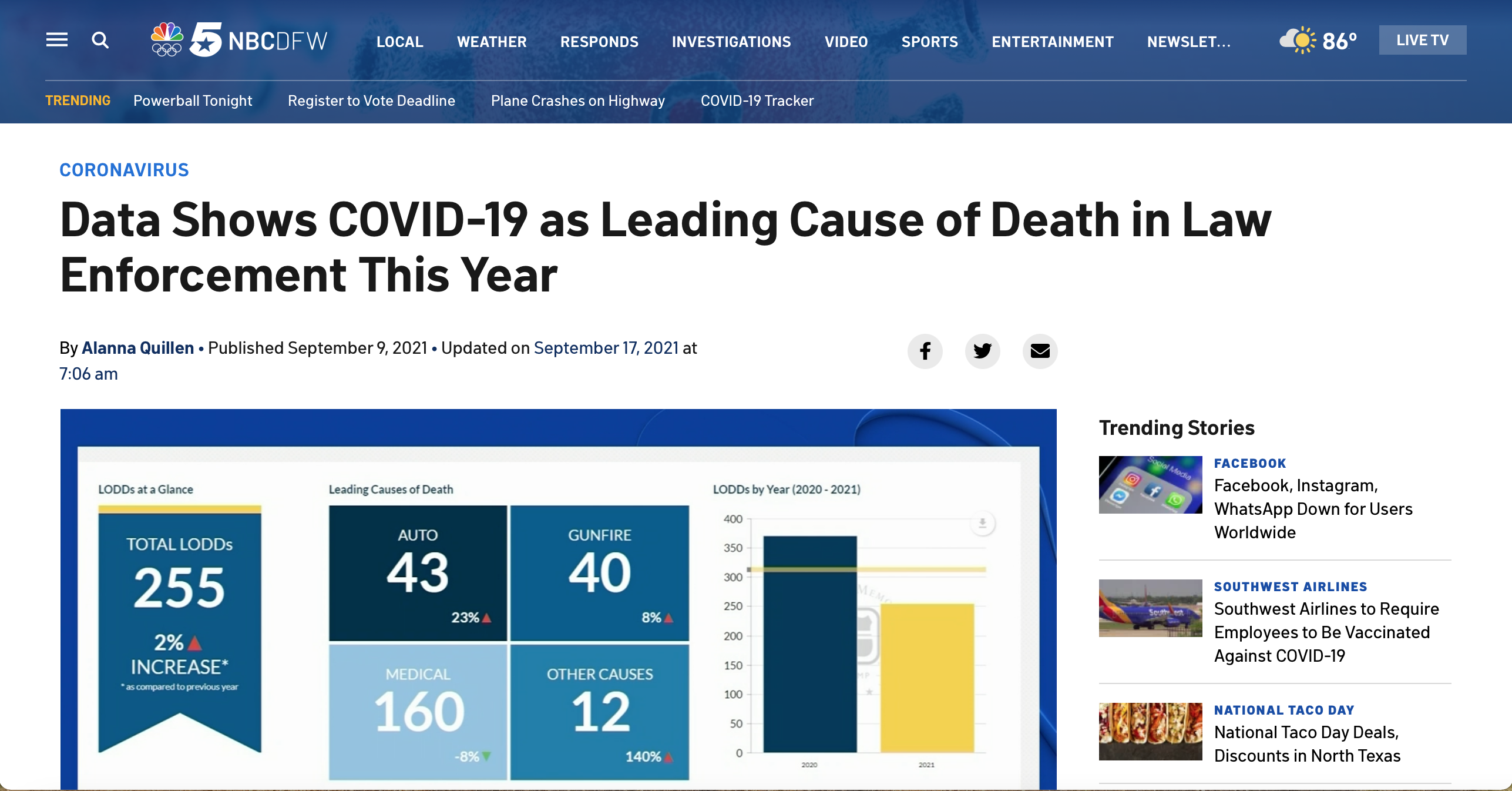 Once again, Covid-19 tops the list for Law Enforcement In Line of Duty Deaths, just as it did last year. Now, more than ever, Law Enforcement needs our support and assistance!