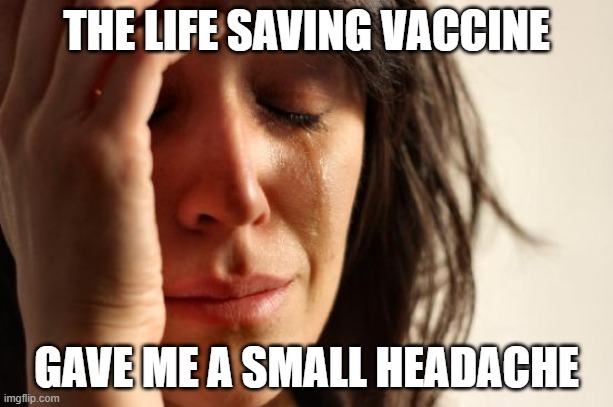this meme makes light of how the vaccine shot would make some people feel slightly sick.