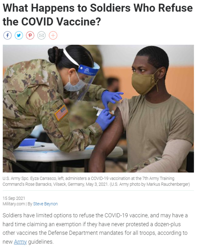 This article talks about the recent vaccine mandate for all US military members and what some of the repercussions could be for those who refuse. Additionally, the article discusses how challenging it can be to get a valid exemption for this vaccine if military members have already consented to dozens of other vaccines during their careers.