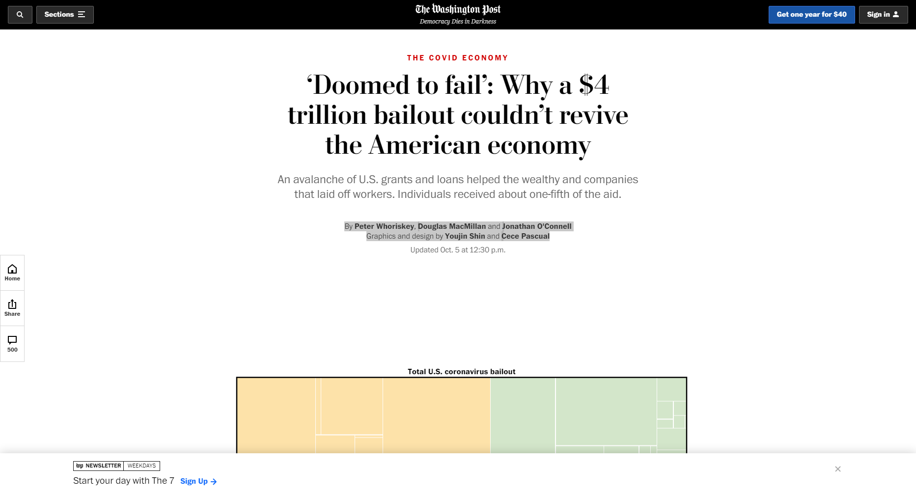This article shows how the economic bailouts of the pandemic helped large corporations much more than they helped impacted individuals. Since the beginning, we've seemingly been supporting and encouraging essential workers. The support can be identified as fraudulent because according to the Washington Post, big companies that employ essential workers didn't use their bailout funds to support their workers. Billions of dollars went out but aid is still running low where it matters the most, with hardworking citizens.