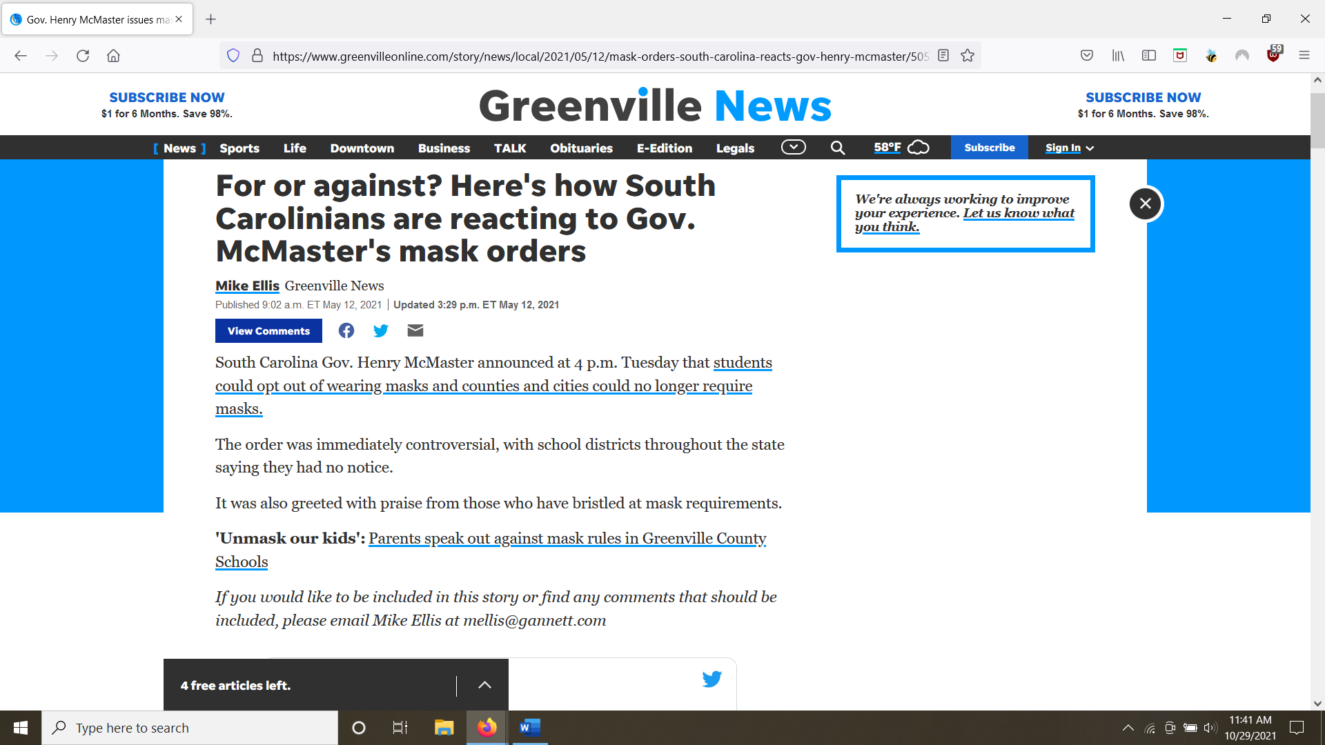South Carolina legislation and its residents have always been on the fence about COVID but when senator Lindsey Graham caught it back in March of this year, reality started to settle in. This was a wake up call to southerns and South Carolinians alike to start taking COVID mandates more seriously. I empathized with Graham but also was somewhat grateful that his sickness would be a lesson to others.