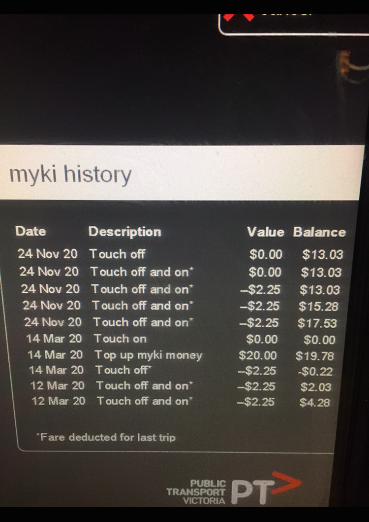 Public transport use- Myki History 2020