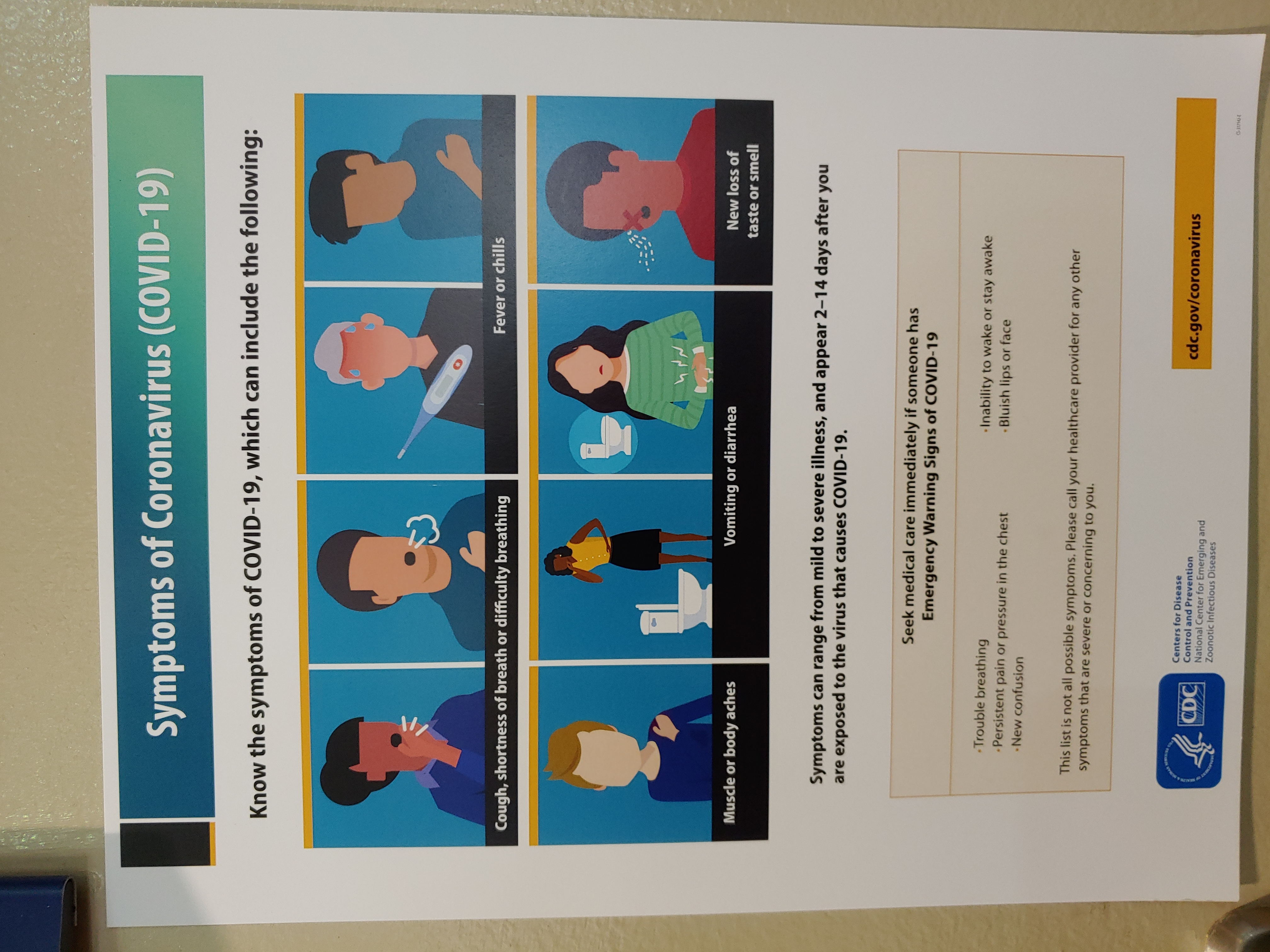 The public was or maybe still is a lot more fearful of contracting COVID 19. If you were sick at you were advised to stay at home and work due to fear of contracting the virus. This image identifies some ways to know if you or someone may be infected with COVID 19.