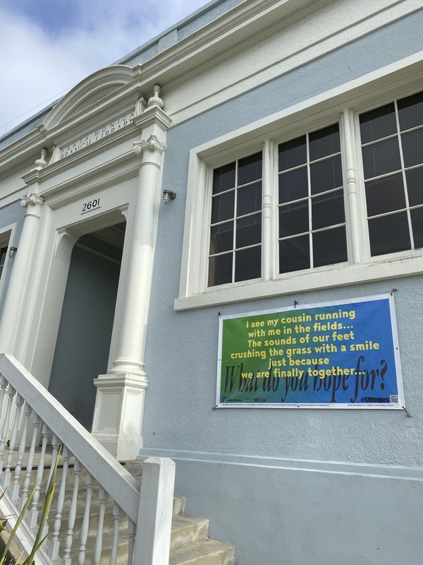 Graphic banner made from a submission to #SMhopes by Roxane D., a Fifth Grade student in Paula Flynn's class at Franklin Elementary School in Santa Monica, CA. In cooperation with Santa Monica Public Library, at the historic Ocean Park Branch on Main Street and Ocean Park.