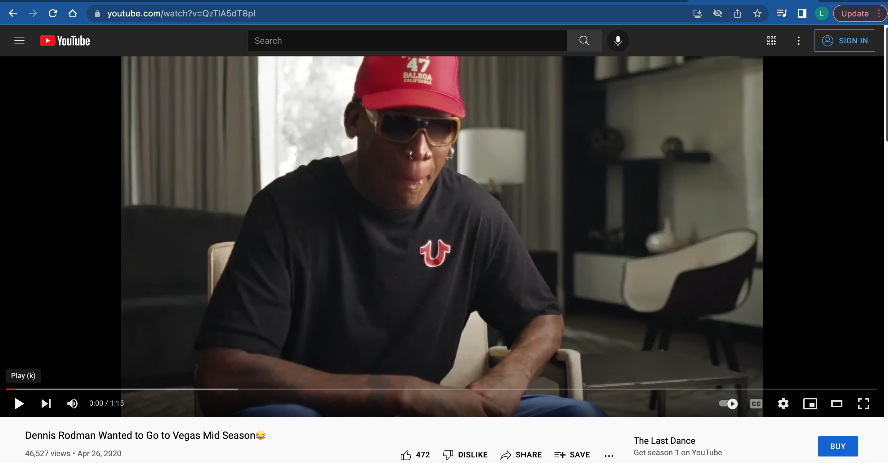 the link is a video of dennis rodman interview talking about going on vacation in the middel of the NBA season