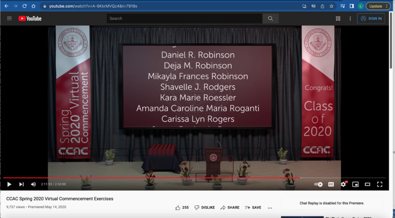 On March 12th, 2020, the Community College of Allegheny County emailed out a letter in response to the COVID - 19 global pandemic. The college had suspended credited classes for five days until faculty and administration had figured out how to stop the spread of COVID – 19 by having a smooth transition from in-person learning to online learning. I was aware that COVID - 19 was starting to become a large problem in the U.S. and other countries, but I did not think that we were at the magnitude that we would need to go online learning. Nonetheless, I was fine with it. I would rather be safe than sorry because I wasn’t sure of the seriousness of the virus and the online learning period was only supposed to last from March 18th to April 19th. And then on April 1st, 2020, the whole state of Pennsylvania had gone on lockdown for COVID – 19, I had then selfishly started to become worried about what the future would hold for me. I was in the last year of my two-year degree program and extremely excited that I was finally eligible to graduate and walk across the stage and graduate with my family cheering for me like every other graduating class before me. I figured there would have to be some type of celebration for the graduating class because, before the year 2020, I and many other students had never even imagined what alternate graduation would look like or how it would even work. I think I and any other student who was a part of the graduating class of 2020 in hindsight are glad that we didn’t have the traditional graduation because we did celebrate our achievements and kept our family and friends safe while doing it.