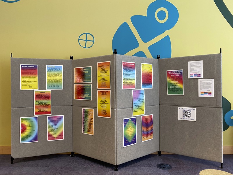 A variety of submissions to the SMhopes website, designed as posters and banners by Paula Goldman, and installed in the Teen Lounge at the main branch of the Santa Monica Public Library. The Library asked for a variety of hopeful messages as they begin having students visit the Teen Lounge again.