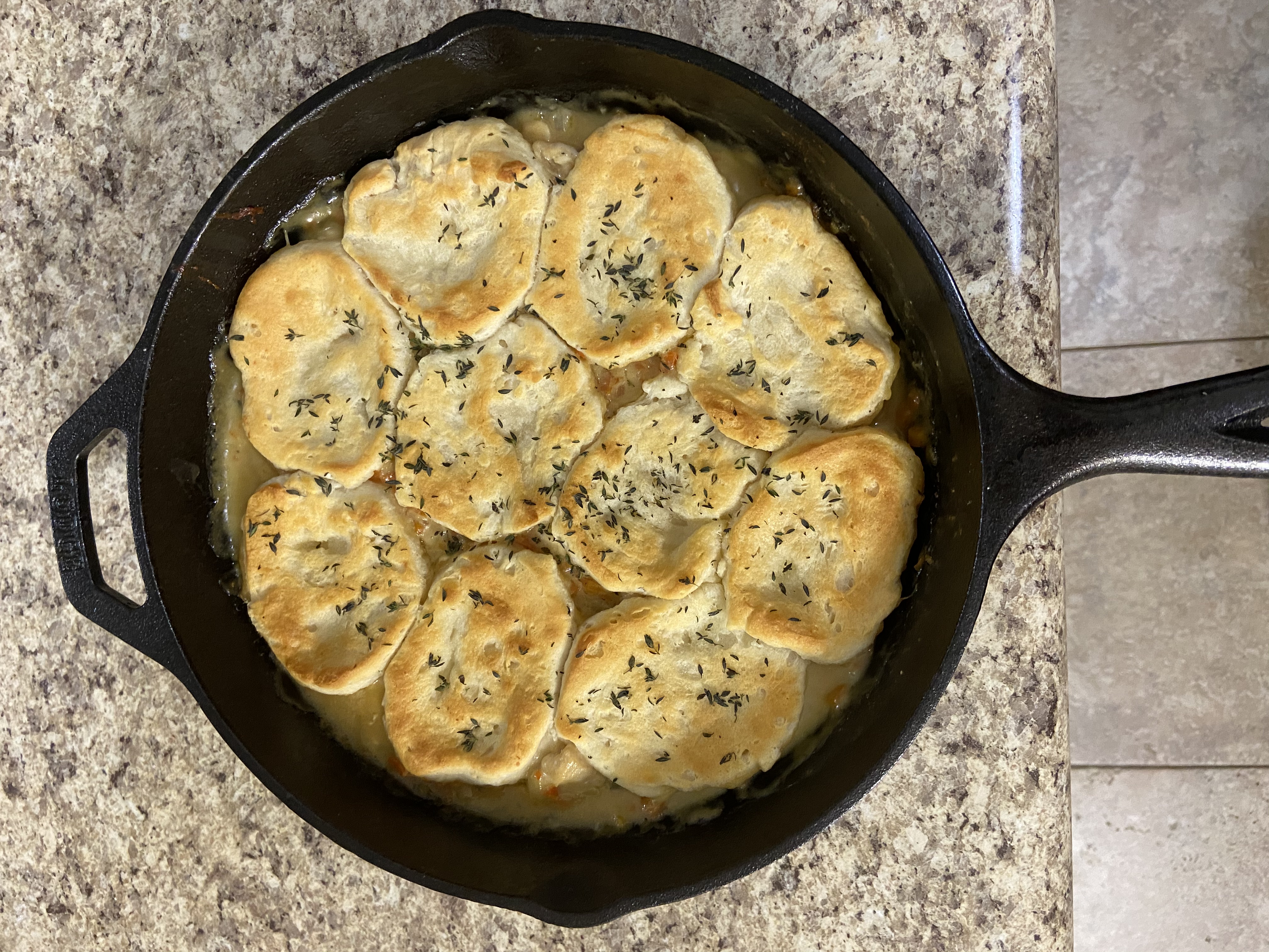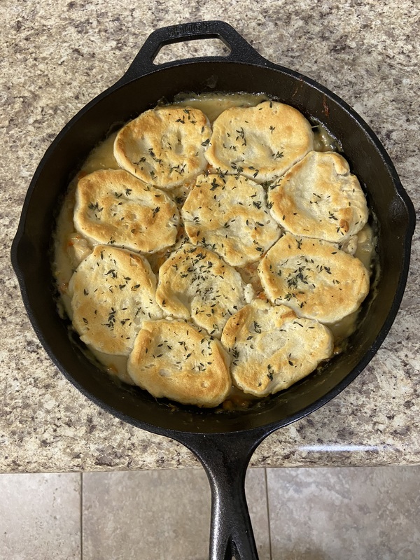 This is one recipe I learned to make during the pandemic. It is a chicken pot pie with a biscuit topping (that I luckily did't have to make myself). I've made many things over the course of this pandemic. Restaurants became too much of a hassle for a while in 2020, and many weren't even open. I used to go out to eat more often before the pandemic, but with me starting school again in the fall of 2020, in addition to masks being very annoying for me to want to wear, I would either order takeout, or make food myself.