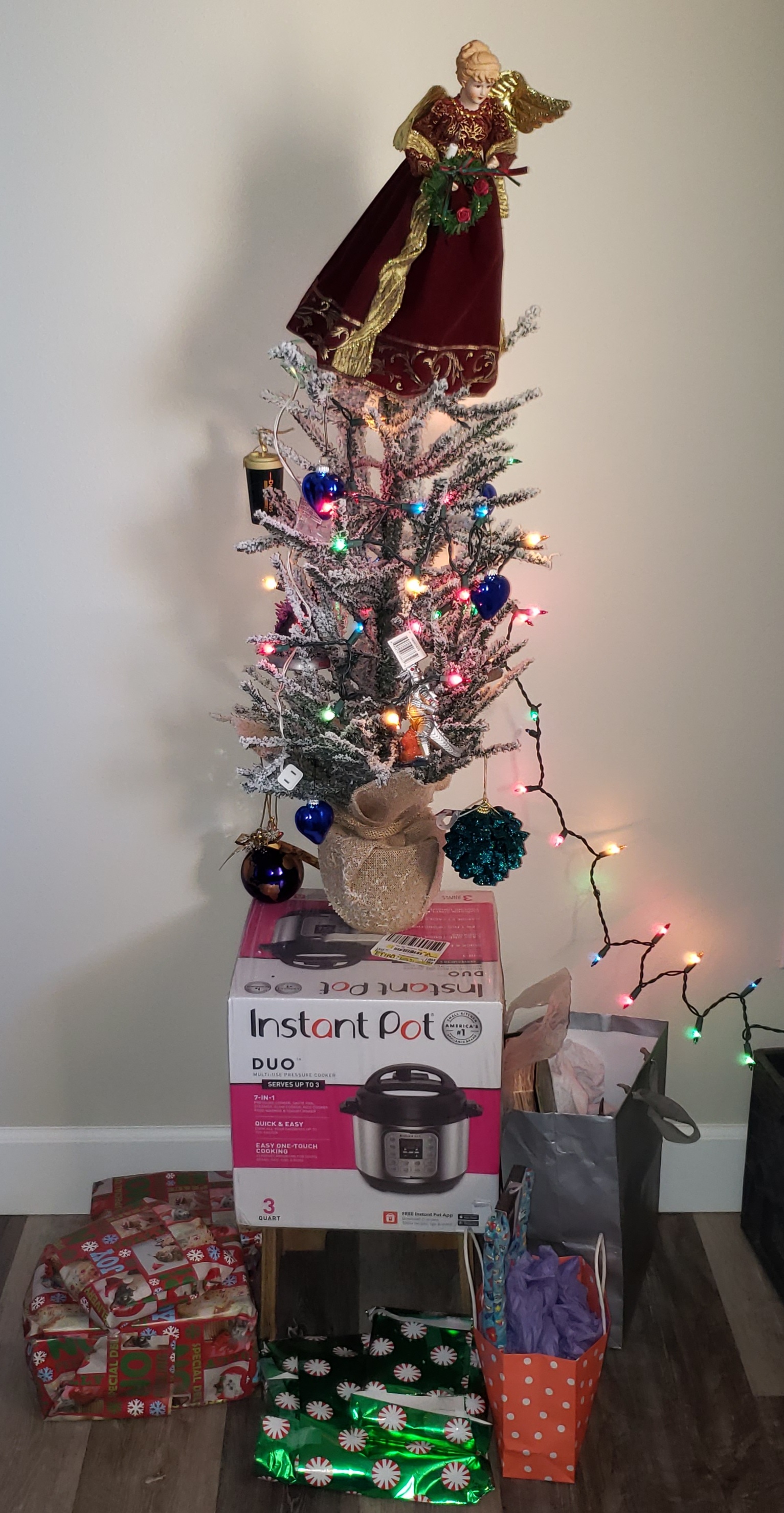This is a picture of the first Christmas tree that my brother and I bought to set up in our apartment. It is a small tree because I figured we did not need a big one since we had a small number of ornaments to hang up. This tree also represents Christmas 2020, the year of COVID-19 and the first year we did not spend Christmas Eve with our parents. My Mom has an auto-immune disease and she could not go out much in 2020. However, at some point, she either went out or COVID was brought home. She ended up in the hospital a day or two before Christmas and tested positive for COVID. Therefore, it was for the best for my brother and I to not go home on Christmas Eve.