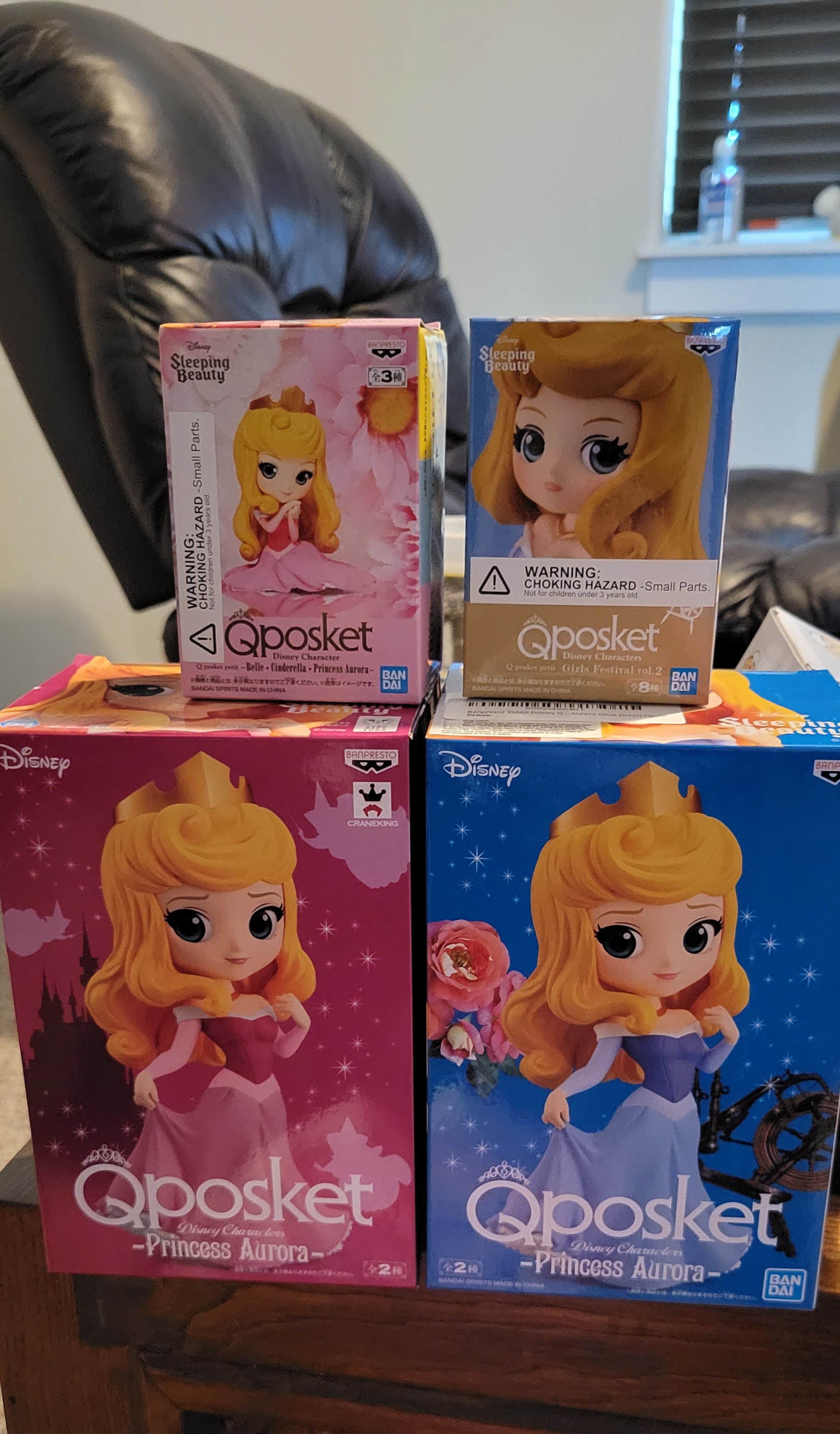 This picture shows the presents I received from my best friend Alex back in October of 2021. Normally, I would have two parties for my birthday; one with family and one with friends. Alex would normally be part of the friend party or possibly a separate party of our own. However, due to COVID, that was not meant to be. Alex wanted to keep healthy in order to keep seeing her nephew, so it was for the best to not hold the party this year. Instead, we decided to meet up on my birthday for about a half-hour to hand out my presents. She gifted me with four figures of Princess Aurora from Disney's Sleeping Beauty. Aurora is my favorite Princess and I was so happy to add these figures to my collection! I am glad that we were able to talk for at least a short time before she had to go home. I hope that in 2022, we can actually hold an in-person birthday party for my birthday and her's as well.