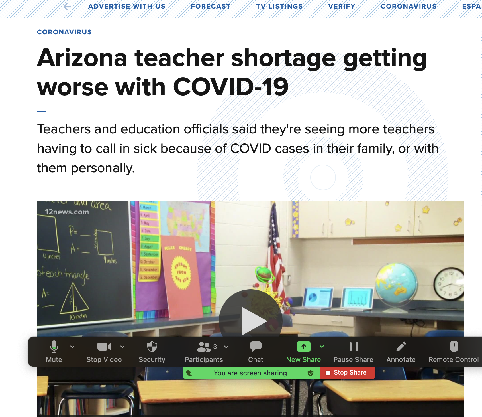 Arizona teachers have struggled with obtaining higher pay and better funding for years. Add to that a legislative body that doesn’t prioritize educational funding, improving teaching conditions or student learning. When Covid-19 reared its ugly head, the pressure public school teachers normally deal with in overcrowded, undersupplied classrooms intensified and – for many overworked teachers – this was the last straw. Teachers who were in a position to took early retirement. Others simply left the profession for the private sector. Still, some remained and adapted to whatever model of learning their school district employed – sometimes on a week-to-week basis. Now that most schools have returned to an in-person modality, teachers are still leaving the classroom. This article sheds lights on the teacher shortage and how, even still, Arizona educators are contending with Covid-19 in their classrooms and families, leading them to reconsider their decision to stay in education.