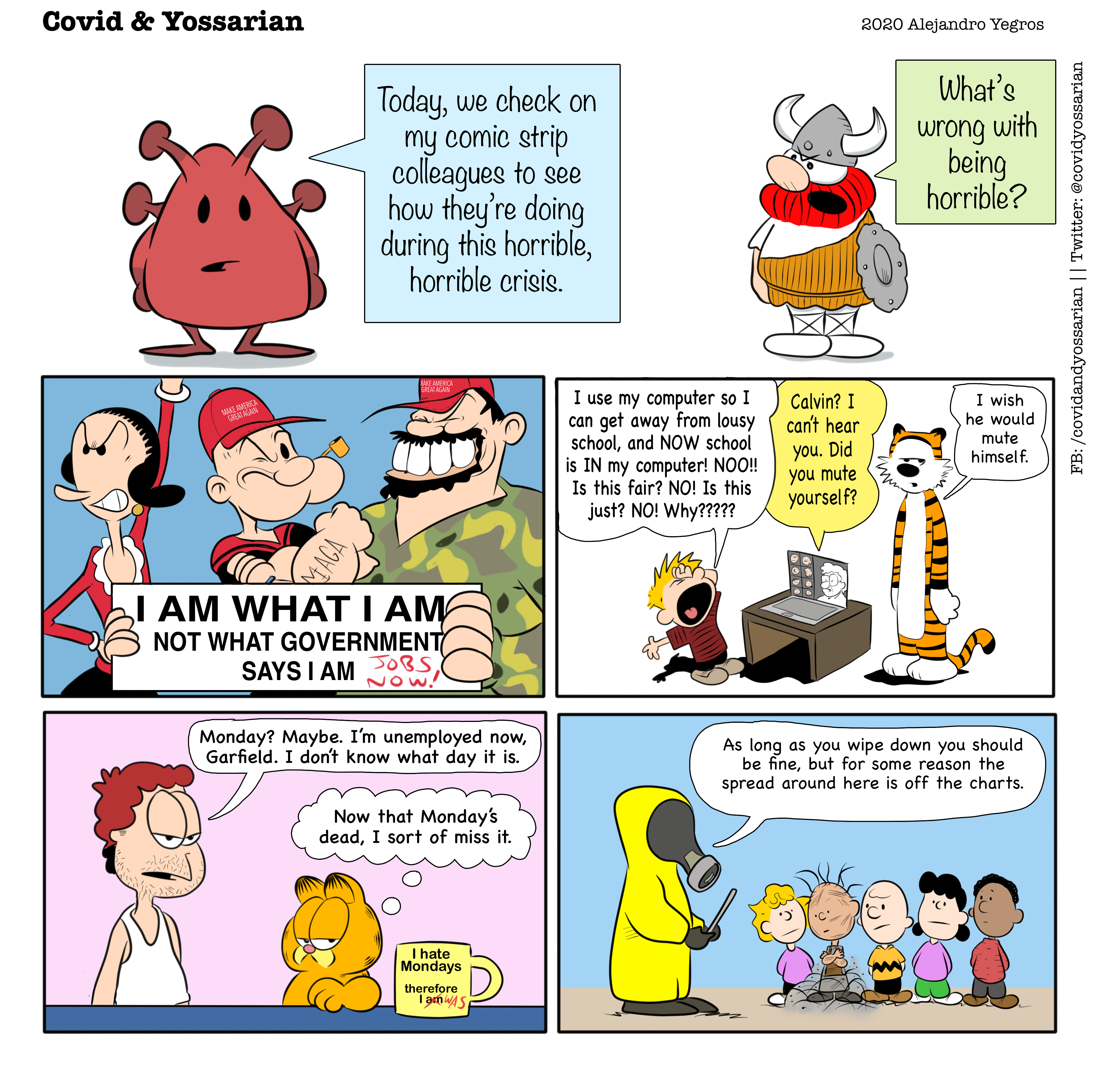 "Today, we check on my comic strip colleagues to see how they're doing during this horrible, horrible crisis."