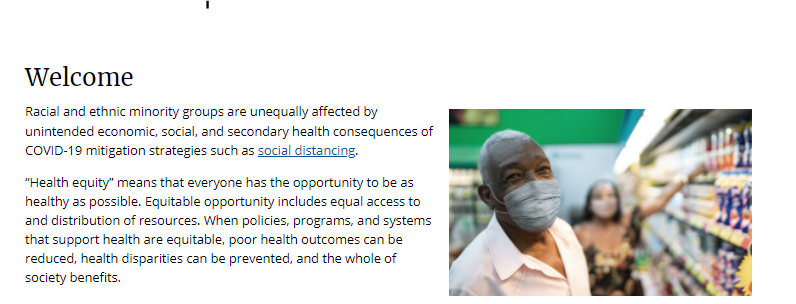 CDC page outlining racial disparity in the transmission and treatment of COVID-19. There are explanations given for the discrepancies pertaining to economic disparity as well. This illustrates the knowledge of the discrepancies in the transmission of COVID-19 across different racial backgrounds and social classes and possible solutions.
