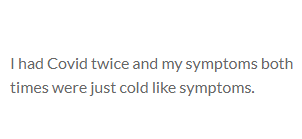 I had Covid twice and my symptoms both times were just cold like symptoms.