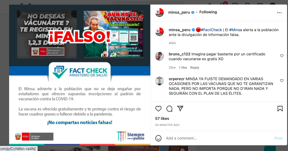 🔴 #FactCheck | El #Minsa alerta a la población ante la divulgación de información falsa.