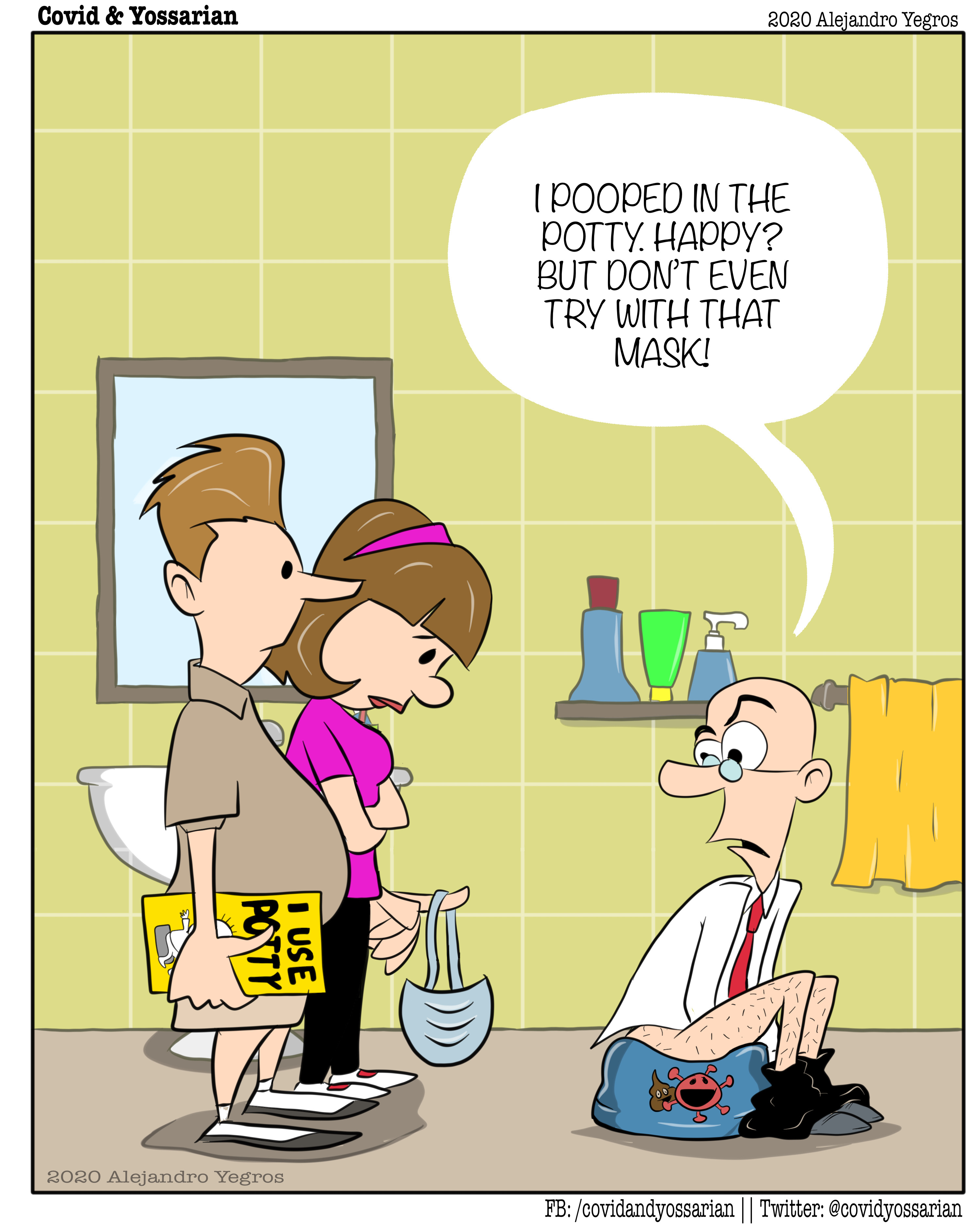 "I pooped in the potty. Happy? But don't even try with that mask!"