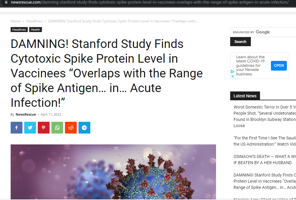 This is an Instagram post by newsrescue, which is a news site that claims to bust "fake news." The study that this news story is referring to is one on spike proteins, which found that the vaccinated and unvaccinated had roughly the same amount of spike proteins in their blood. This news story is designed to show that the vaccines may not be as effective as they are claimed to be.