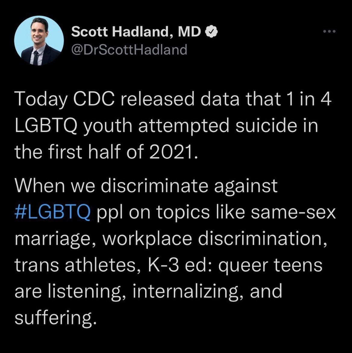 Suicide statistics against queer youth released by the CDC in the first half of 2021. According to the CDC, 1 in 4 queer children attempted suicide.