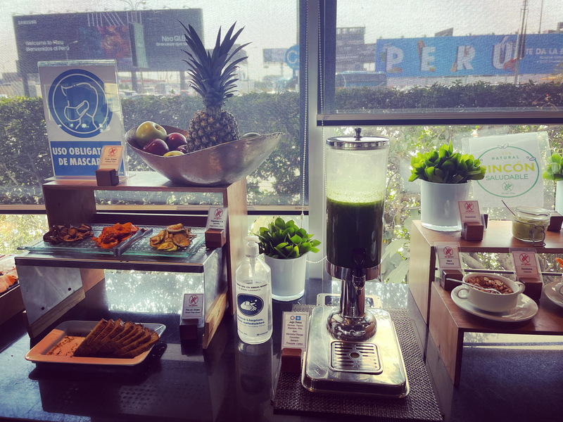 we just arrived to Peru This morning. Before we got on the plane we were told that we would have to show two masks because in lima we would need to double mask while walking around no one seems to be checking if you have one mask or two masks but everyone is wearing a mask. This is a photo of the free breakfast the airport hotel provided this morning after waking up. You’ll notice the sign that says Masks are obligatory. We’re staying at the Wyndham Costa Del sol hotel.