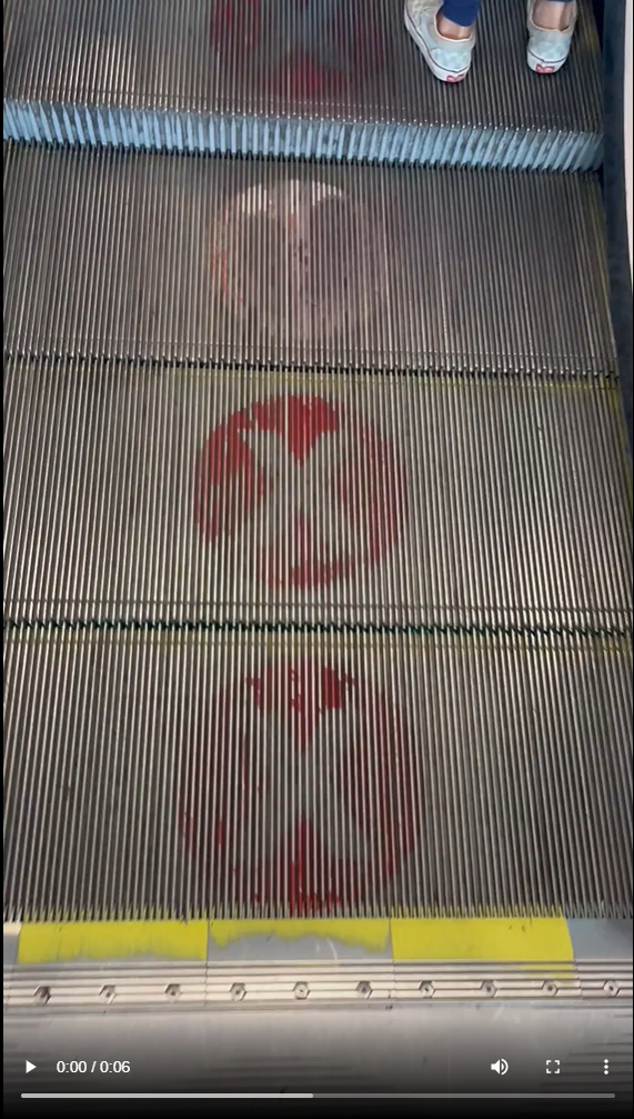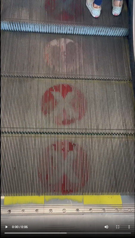 Social distancing marks on escalator