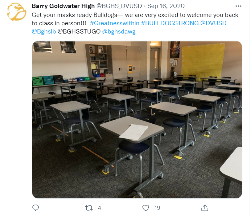 This screenshot is of a post from Barry Goldwater High School, which is part of the Deer Valley Unified School District in Phoenix, Arizona.