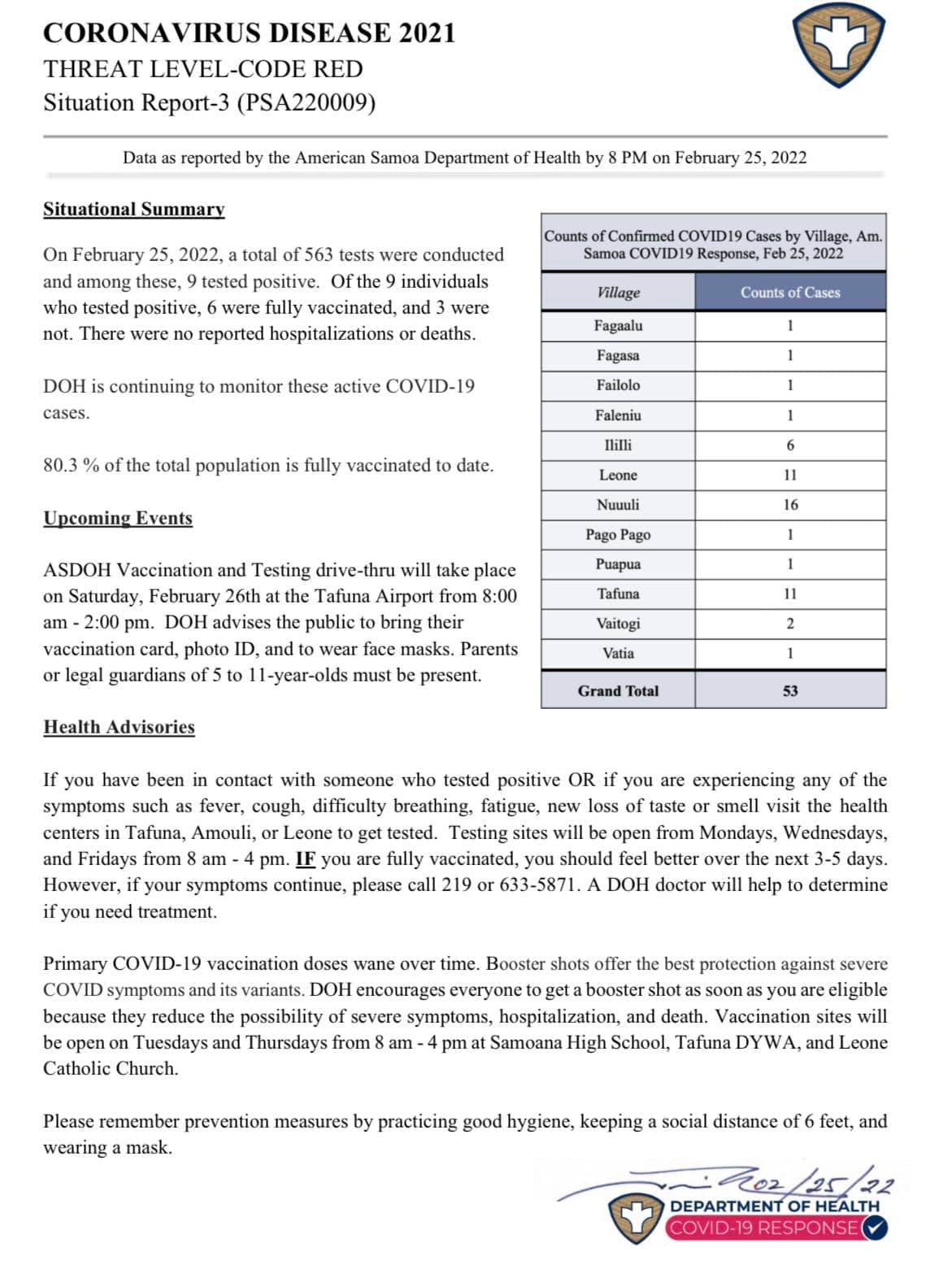 This is the second report from the American Samoa Department of Public Health in regards to reporting the number of cases in American Samoa. After a day, the number of cases jumped from 22 to 53.