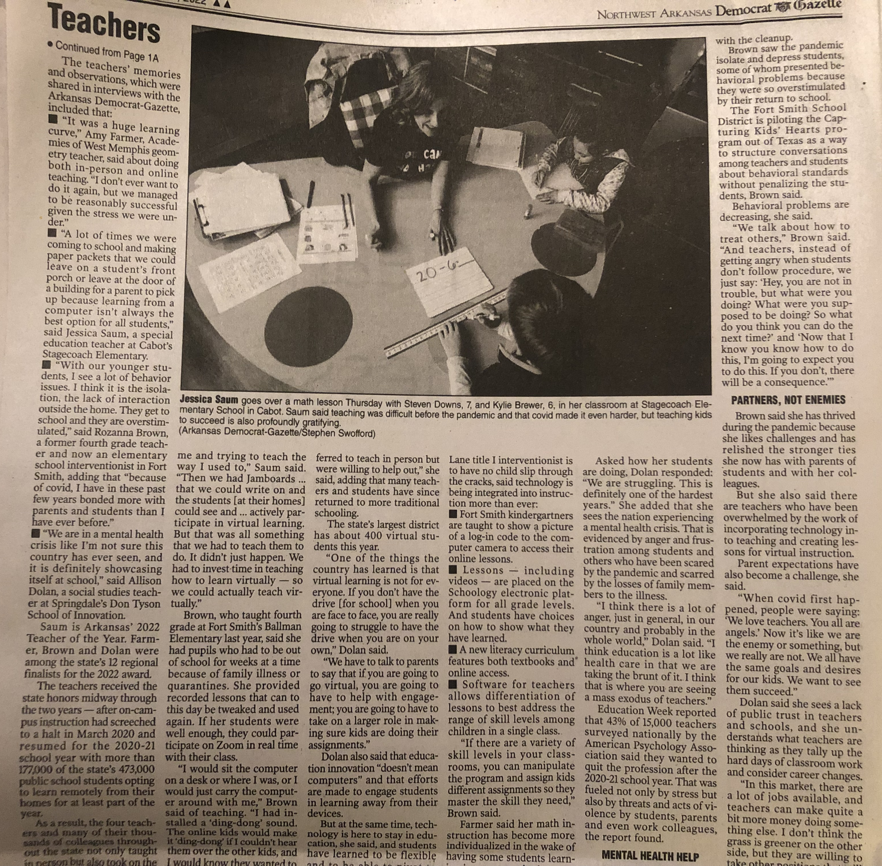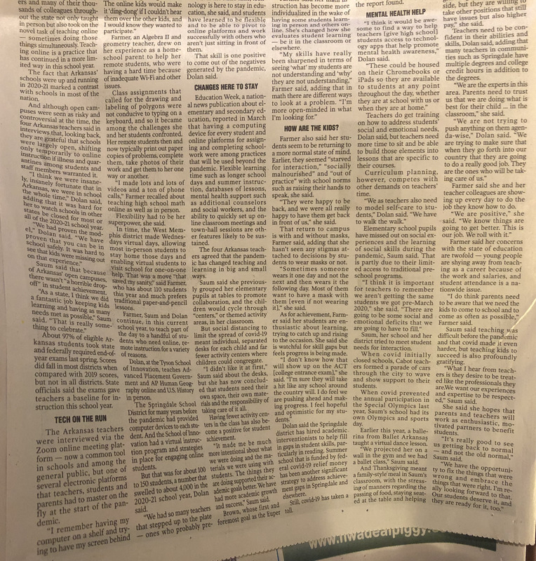 This article details the reflection of a few Arkansas teachers as we reach two years since the beginning of the pandemic. The teachers highlight the drastic changes not only in safety precautions, but also the adjustments in order to provide meaningful learning in an entirely new landscape. Many of the teachers reported excitement at the prospect of a return to normalcy, however they desire some aspects of the pandemic adjustments to remain in place. Flexible learning, new and creative ideas of conveying topics, and more individualized learning methods have seen an increase in retention of material, which is fundamentally what education is all about. The teachers would also like an end to the stigma surrounding the covid learning adjustments, primarily the notion that education is now "entirely computer based". This notion is quite the contrary, according to educators, rather the new methods not only encourage flexibility and invite individualized learning but also promotes computer skills which will be vital for adulthood.