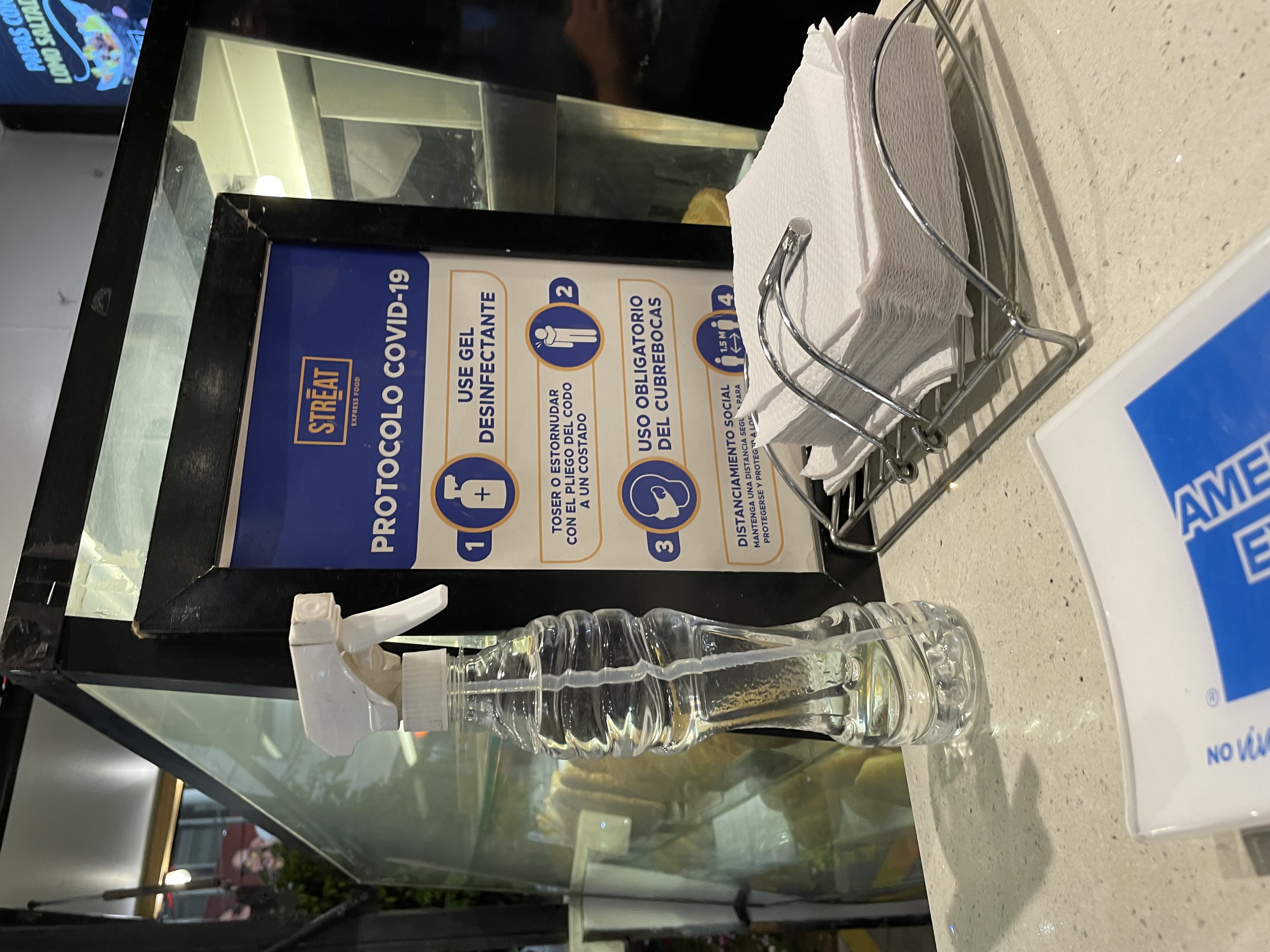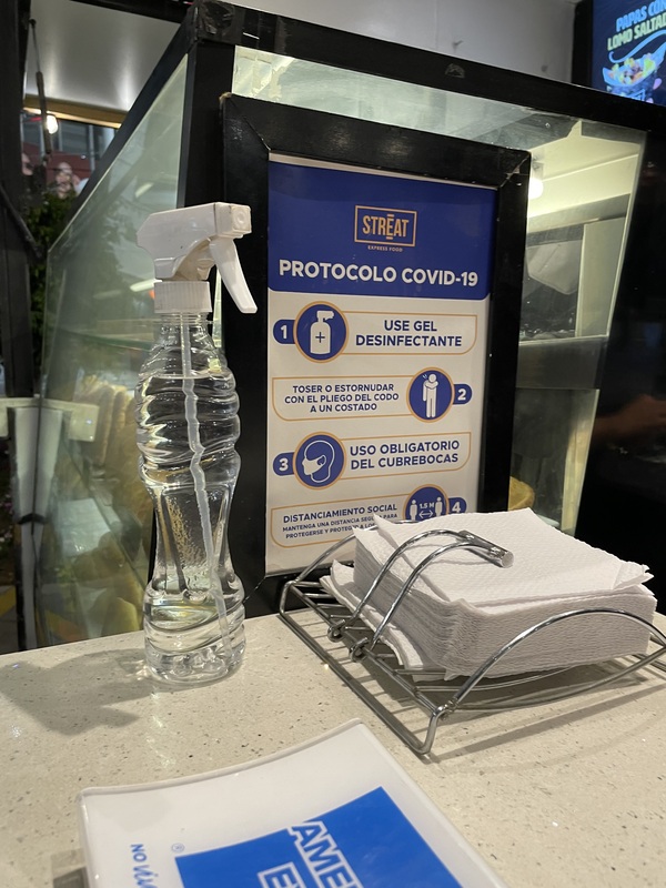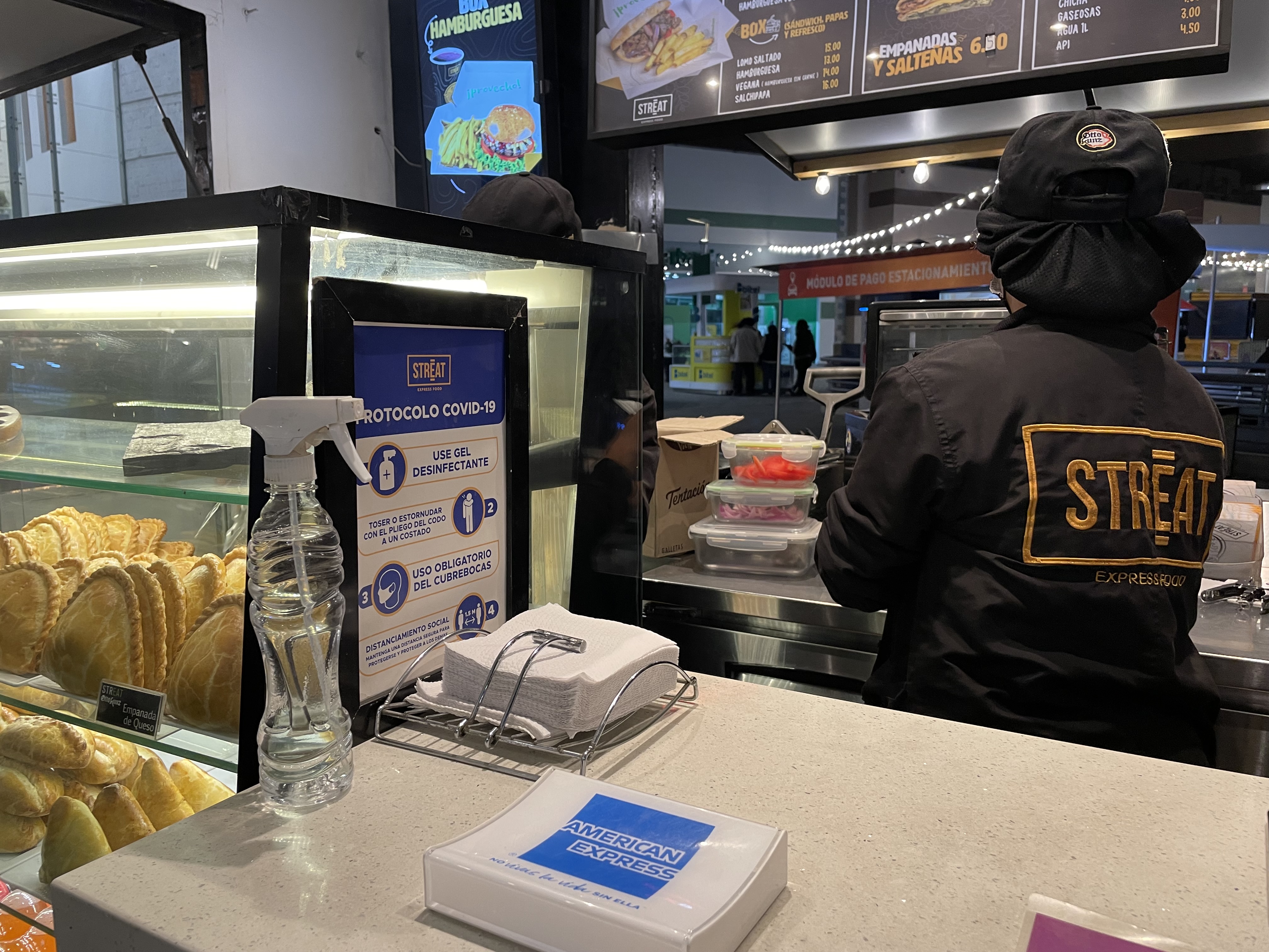 These are some photos showing the COVID-19 hygiene measures posted at an Empanada stand called Streat in Arequipa, Peru.
