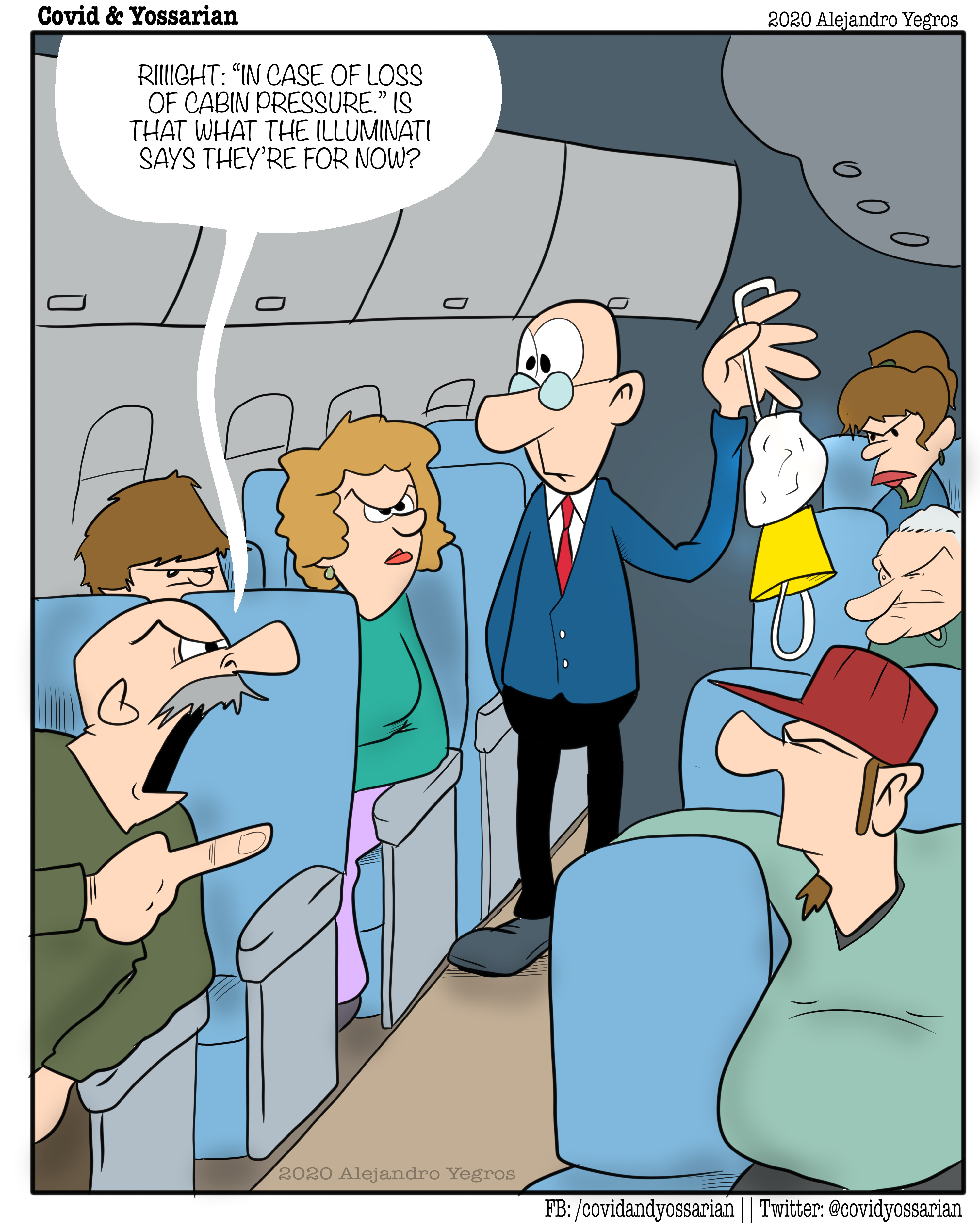 "Riiiight: 'In case of loss of cabin pressure.' Is that what the Illuminati says they're for now?"