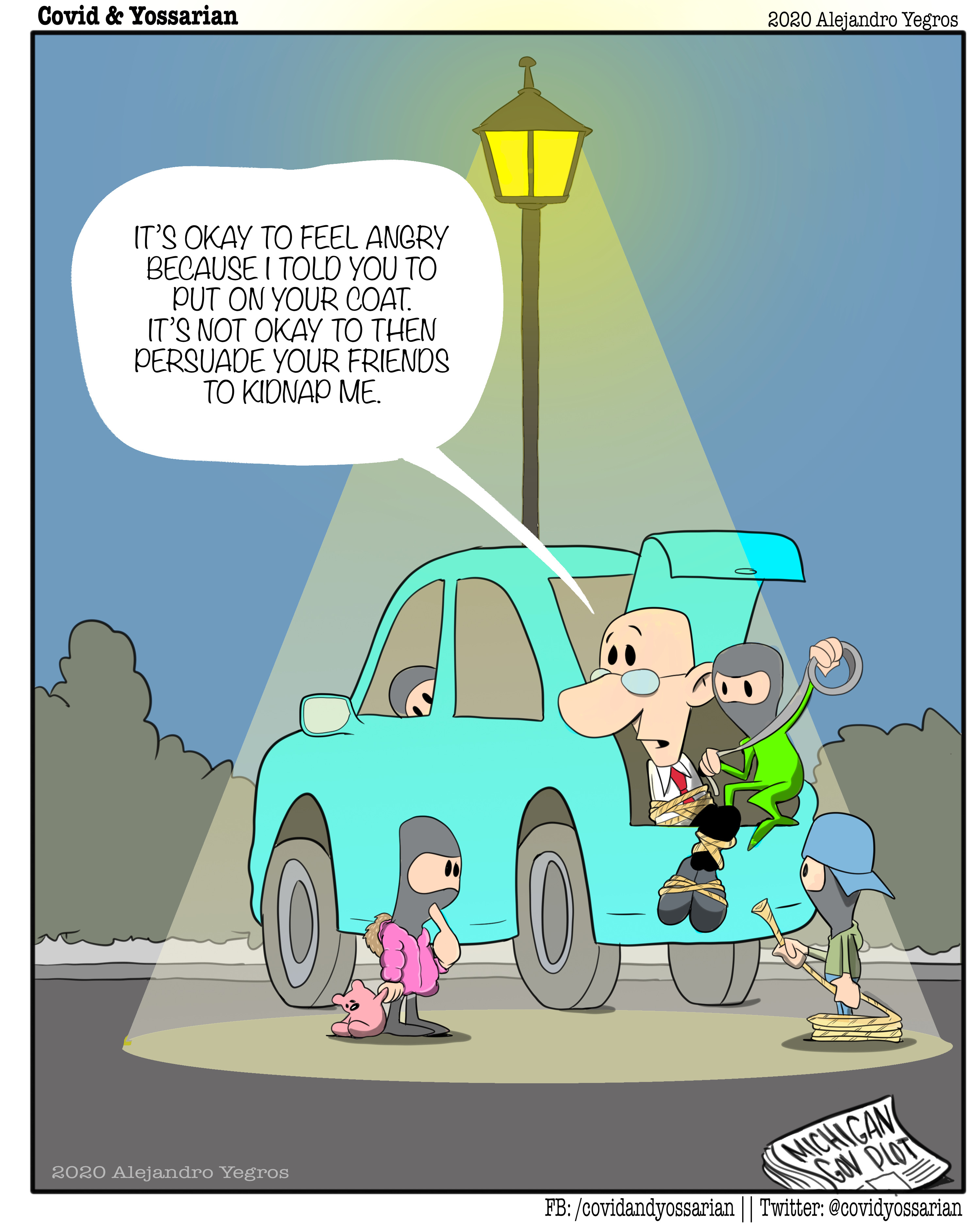 "It's okay to feel angry because I told you to put on your coat. It's not okay to then persuade your friends to kidnap me."