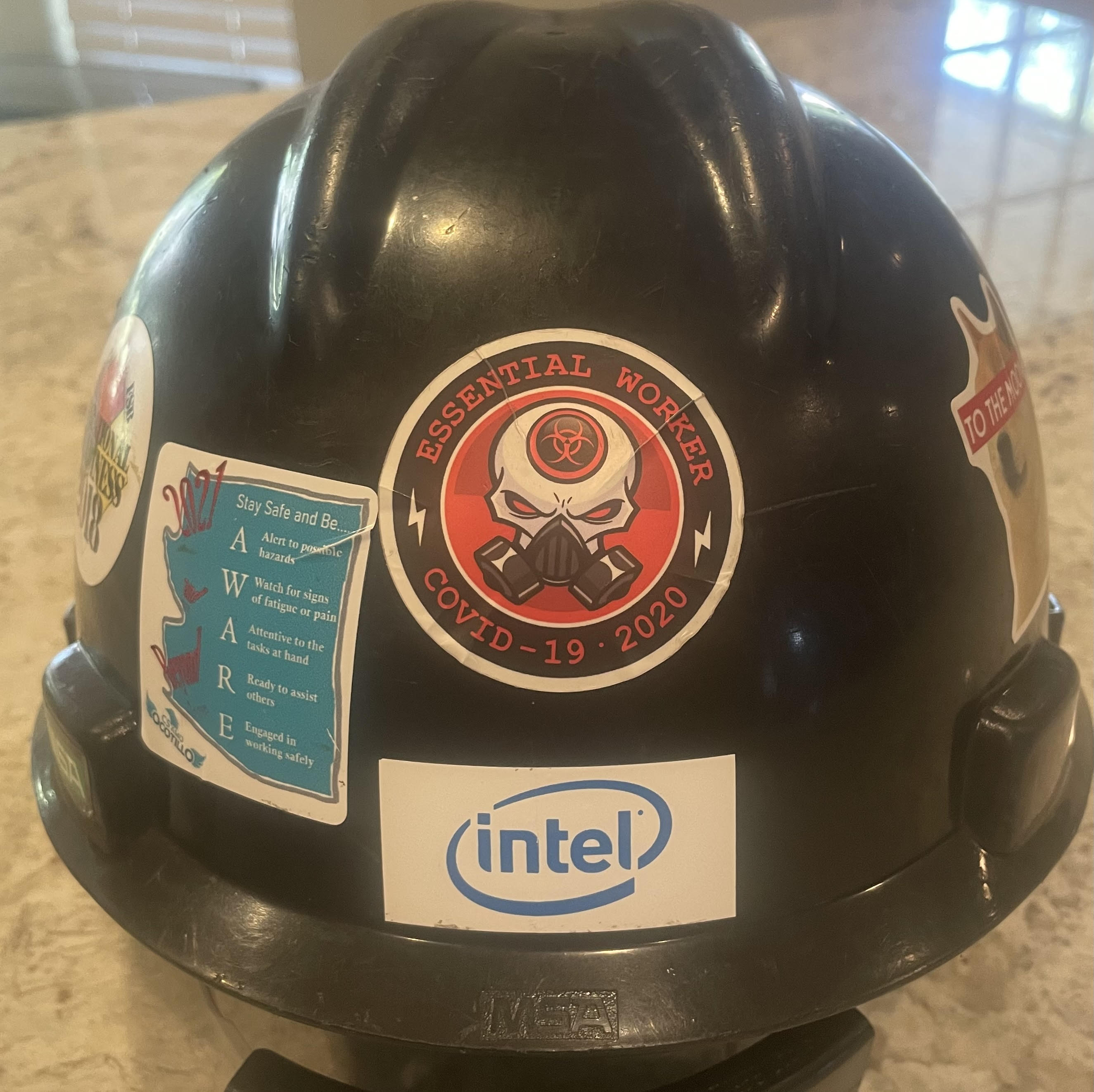 The attached picture is a part of my story during the pandemic. I work in the semi-conductor industry at a site that makes a large amount of important computer chips that are vital throughout the world. Our site was experiencing the pandemic just like everyone else, parallel to a time when everything we manufactured was in extreme demand due to many people working from home, schools teaching from a distance, cars needing chips, and medical equipment in high demand. It was absolutely critical that our site continued to operate safely and could not shut down. Our site and corporate managers made policies to ensure that only the minimum number of critical employees were on site to limit the chances of COVID-19 transmission, while following state-mandated essential rules during the early pandemic shutdowns. I was given a form to travel with and this sticker, additionally our badges would not let us in the site without specific essential worker access. This sticker is a daily reminder of what a crazy time I was part of, working on our site with minimal people pulling together to enable people to have the technology the needed to keep the world moving, from home...