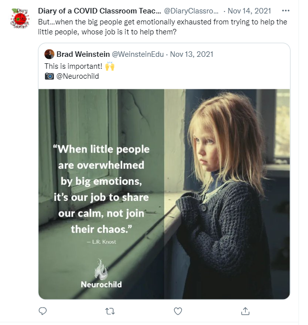 This item is a screenshot from a Twitter account known as the Diary of a COVID Classroom Teacher.