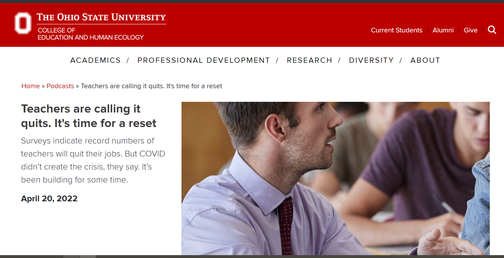 Before the pandemic, teachers already experienced a job where they are overworked, often underpaid, and underappreciated. This article details rising frustrations by teachers during the pandemic and the subsequent leaving of many people from education.