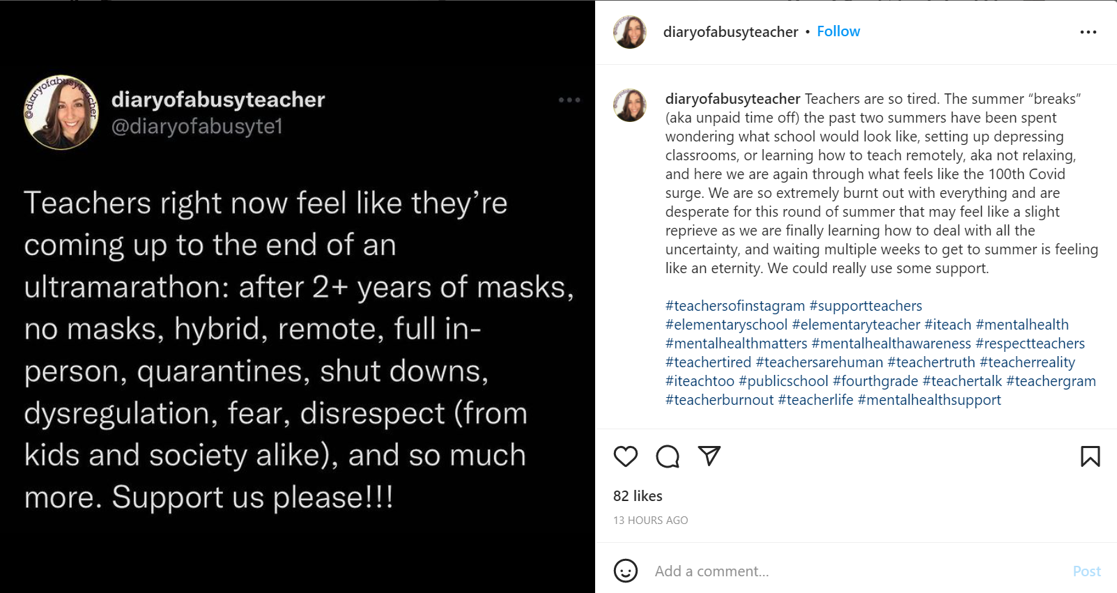 Now that we are ending the 2022 school year, many people have "returned to normal". Most students no longer wear masks in schools. However, we are still working through the pandemic. Teachers are still at risk for contracting COVID and are navigating the severe behavioral problems of students. With summer approaching, everyone is looking forward to a break from an extremely stressful year.