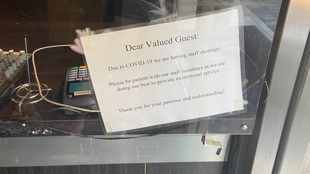 Due to COVID-19, Gen, a Korean barbecue place, has had a staff shortage. Today I went there for lunch and noticed that there was fewer people working many tables than in times I have gone in the past. This speaks to the bigger labor issues that have come about since COVID. Some of it may be realizing that jobs like this aren't offering nearly enough to work there. Another possibility is that staff shortages might be happening from vaccine mandates, which depending on how many vaccines some place require, would be less appealing. The sign says that it is only due to COVID-19, but there are many components to that, so narrowing down the reason there are staff shortages could be difficult unless I asked the manager.