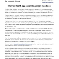 Banner Health joins Mayo Clinic, Dignity Health and others to spread "Mask Up" message Wearing a face mask is best way to slow down surging COVID-19 pandemic Linked Data Interactive Resource