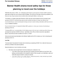 Banner Health shares travel safety tips for those planning to travel over the holidays Linked Data Text