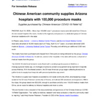 Chinese American community supplies Arizona hospitals with 100,000 procedure masks Linked Data Text