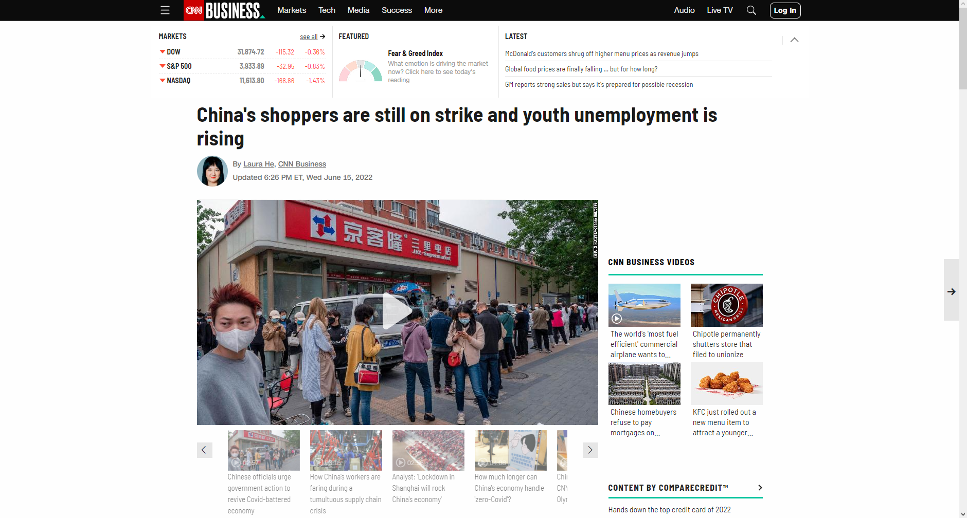 This is a news story from CNN by Laura He. This article is on the economic impact of China's zero COVID policy.