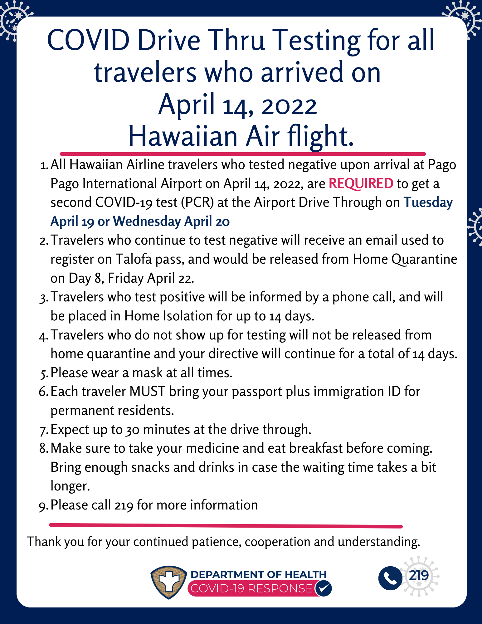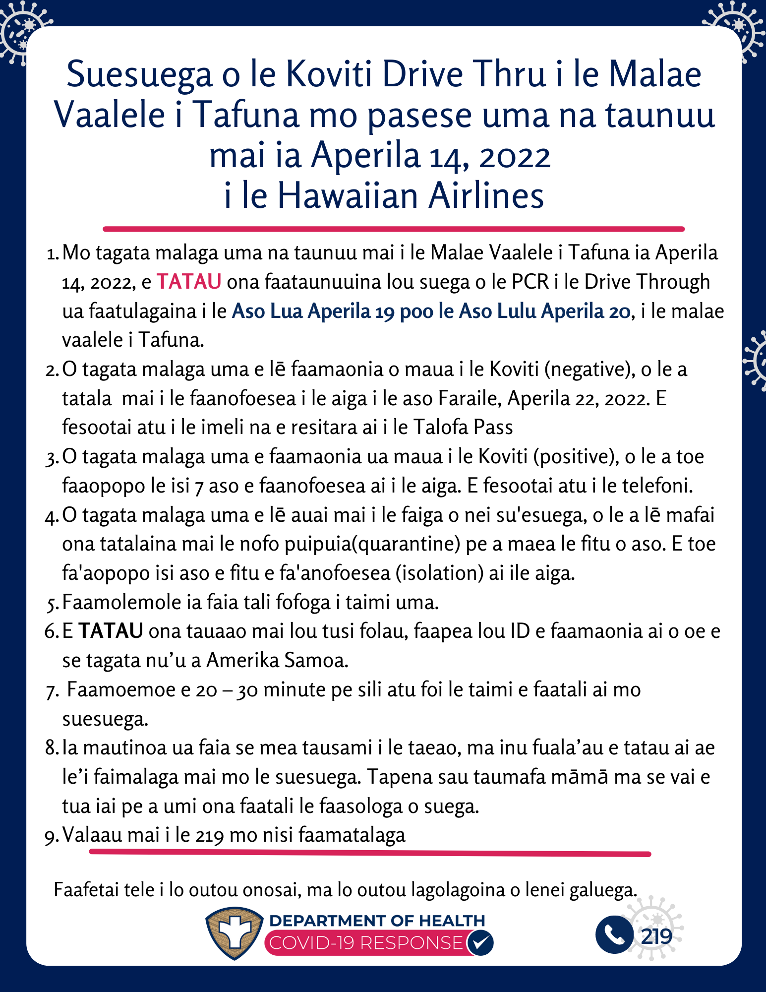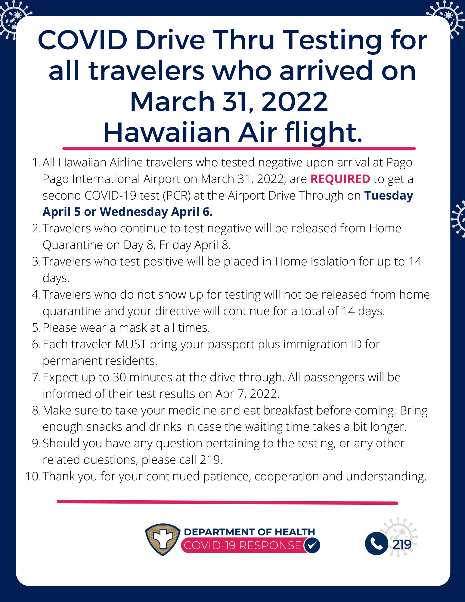Opening up the borders in American Samoa was great news for Samoans that were stuck in the states for a year and a half borders were closed in American Samoa. And just when they think going home would be easy, it wasn't. There were a lot of requirements that were set by the government for travelers to follow when entering the island. This was one of the many requirements that travelers had to follow to ensure the safety of the people of American Samoa. Even if your test came negative upon arrival, you still had to get a second test to make sure that you do not have COVID. Somehow, despite these requirements, restrictions, and quarantine, cases still emerged on the island.