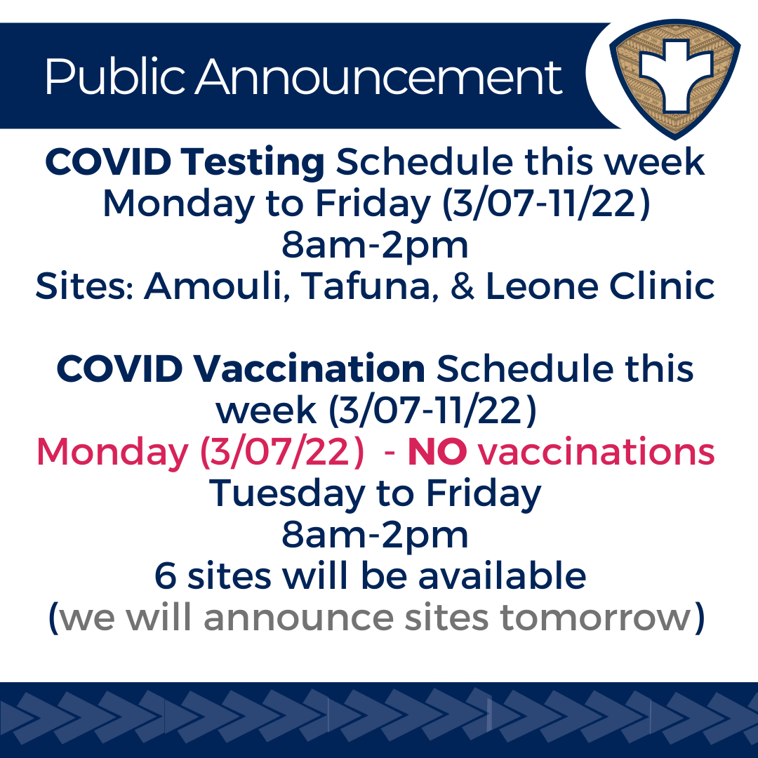 These are some of the many flyers by the American Samoa Department of Health for the people of American Samoa on information about the where, when, how, what, and why of COVID 19 vaccinations and tests on the island.