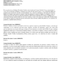 CK: Bueno, entonces, eh, como le digo, se esta grabando y esta entrevista igual que las otras dos, se va a poner en un archivo digital que se llama el COVID nineteen archive o el archivo del COVID 19, y tengo muy buenas noticias ya por fin tienen una archivista que habla español y por lo mismo ella ya está realmente procesando las primeras dos entrevistas que he hecho de costarricenses y creo dentro de dos semanas máximo voy a tener un enlace donde usted puede ir y ver las primeras dos y tengo que transcribir esta, pero después muy pronto después de transcribir, esta también estará disponible igual que las demás entrevistas entonces creo.