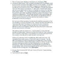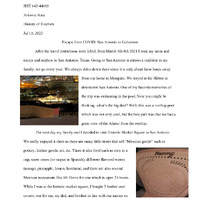 For this assignment, you'll submit one item that captures a travel memory that relates to the COVID-19 pandemic. You'll submit your item to the COVID-19 Archive Links to an external site.on the "Share your Story Page." Include the following metadata (information):