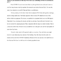 For this assignment, you'll submit one item that captures a travel memory that relates to the COVID-19 pandemic. You'll submit your item to the COVID-19 Archive Links to an external site.on the "Share your Story Page." Include the following metadata (information):
