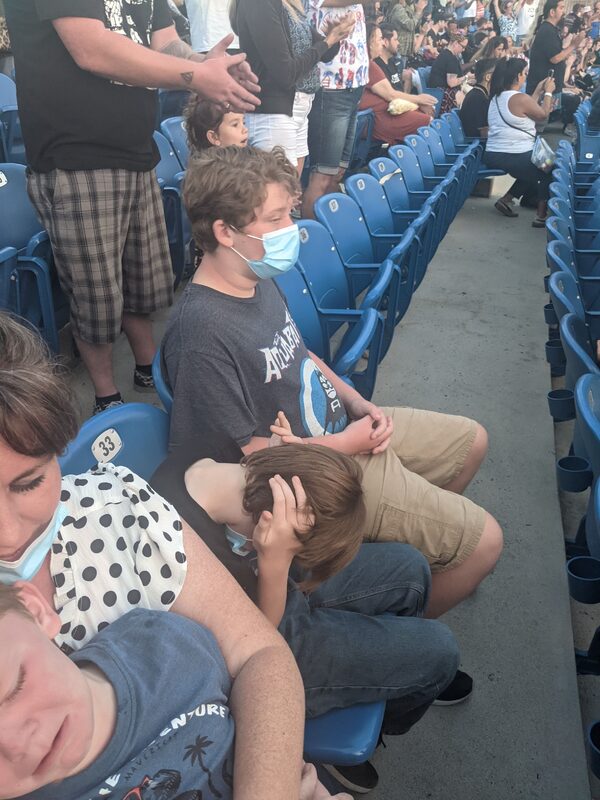 As pandemic restrictions began to ease up, we decided to travel with our family from Arizona (where things had been less strict) to California (where things had been more strict) to see a concert. Many of the music artists we enjoy had only been performing via live stream for the prior year and a half, but now a band we enjoyed was having an outdoor concert at a large venue. After buying tickets though, we worried because we began to see information on the venue's website that indicated only California residents would be permitted. We tried calling, but there were no responses. We went on the trip, not knowing if we would be turned away. Luckily, the website for the event updates the day off and we were able to enter. It was an awkward feeling as masks were still required for an outdoor event, but the vast majority of participants didn't have them on. The picture is my son in outdoor seating wearing his mask despite everyone around us not. This was much less an act of social defiance or morally based compliance, and more of confusion about what was really expected and fear of stepping across unclear lines in a neighboring state.