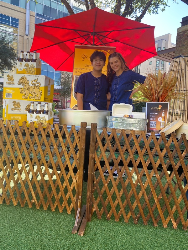 Unfortunately, I have not been able to travel since the COVID-19 restrictions were lifted. The last two years of my undergraduate were affected by the pandemic, and initially, I was planning to study abroad during my senior year. Unfortunately, that was not possible and I was barely able to complete my student teaching placement for my Secondary Education Minor as the program was constantly under revision to ensure student safety. Now, as a graduate student, if I could go anywhere it would easily be Thailand as that is where my personal historical focus is. While my Thai is far from fluent, I have been steadily learning the language for about a year now as I hope to have an opportunity to complete an extended stay for scholarly or leisurely purposes. In terms of specifics, I would first like to travel to Chiang Rai, Sukhothai, or across Isan as Northern and Eastern Thailand have some of the richest historical and cultural sites, combined with the fact that individuals who I am very close to are from these areas as well. I have worked part-time at a Thai restaurant in Houston for a significant amount of time which helps considerably with practicing the language. As I am one of the only foreigners that works for the restaurant, the owners, my co-workers, and the individuals I have been introduced to through them have become like a second family to me, and I am very grateful for their generosity, inclusivity, and willingness to teach me as an outsider to the culture. Thus, I would love to be able to visit the areas that have meaning to them as well as fulfill my own historical ambitions. Two of my closest co-workers and I discussed traveling to Thailand and Laos together, and we agreed it would be interesting if we started a vlog to document the process. Not every temple or historical landmark allows photography or video to be taken, but I do think a vlog would be a great way to capture the moment as I am not the best at actively documenting things through social media. Video documentation also has the advantage of directly capturing the emotions and excitement of traveling as opposed to journaling or even photography. The photo I chose is of my co-worker and me at an event for the restaurant promoting Northern Thai cuisine in the traditional "Mo Hom", or the shirts worn by rice farmers.