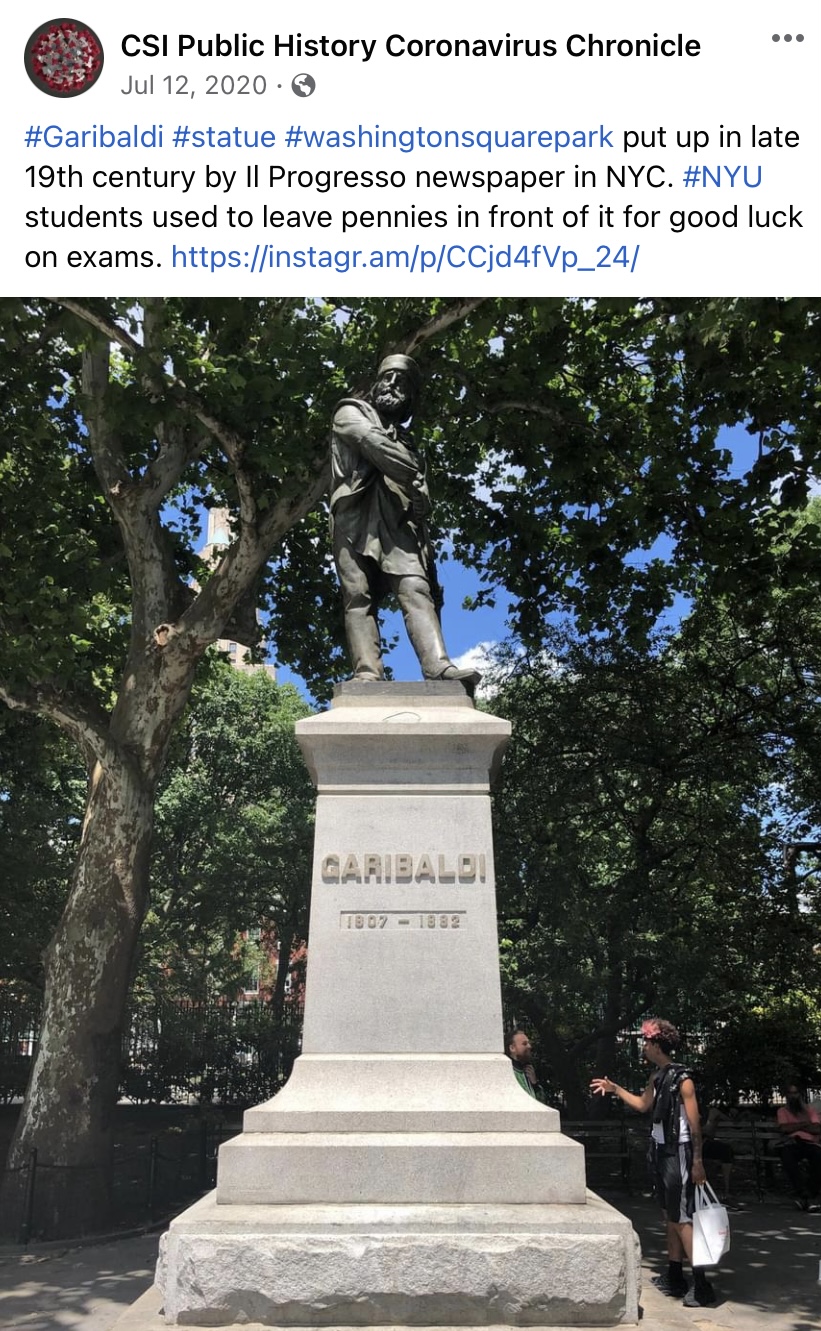Screenshot of Garibaldi statue from the CSI Public History Coronavirus Chronicle