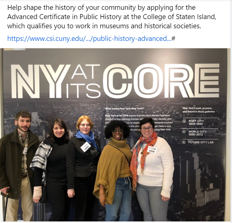 Help shape the history of your community by applying for the Advanced Certificate in Public History at the College of Staten Island, which qualifies you to work in museums and historical societies.