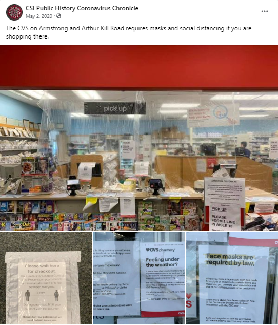 The CVS on Armstrong and Arthur Kill Road requires masks and social distancing if you are shopping there.