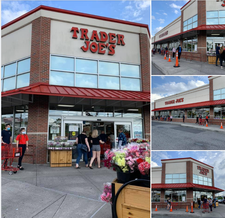 Due to Covid-19, Trader Joe’s on Richmond Avenue is limiting the number of customers in their store, which leads to long lines of shoppers waiting to enter.
